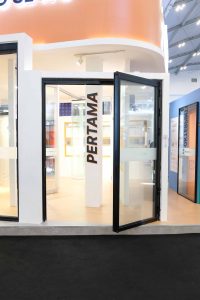 - Partisi Kaca (Glass Partition): Pilihan favorit untuk kantor modern yang mengutamakan transparansi dan pencahayaan alami. Partisi kaca menjaga nuansa ruang yang terbuka sambil tetap memberikan batas akustik. Untuk kebutuhan privasi, tersedia opsi kaca buram (frosted glass) atau bahkan smart glass.